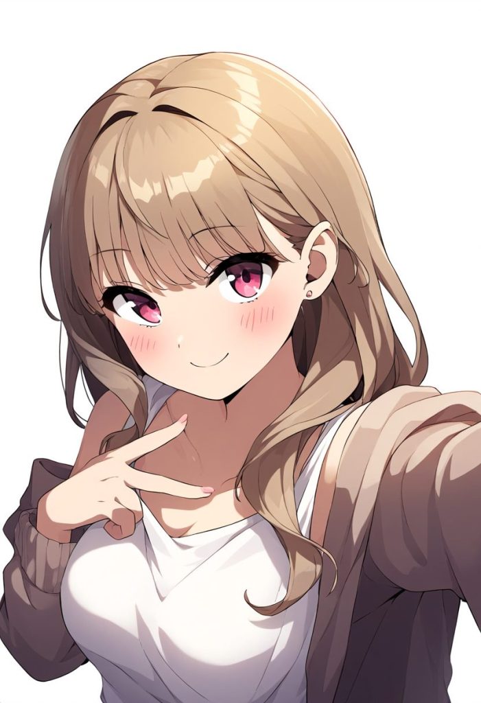 マッチングアプリにいる女の子のプロンプト(茶髪、ロング、お目々パッチリ)