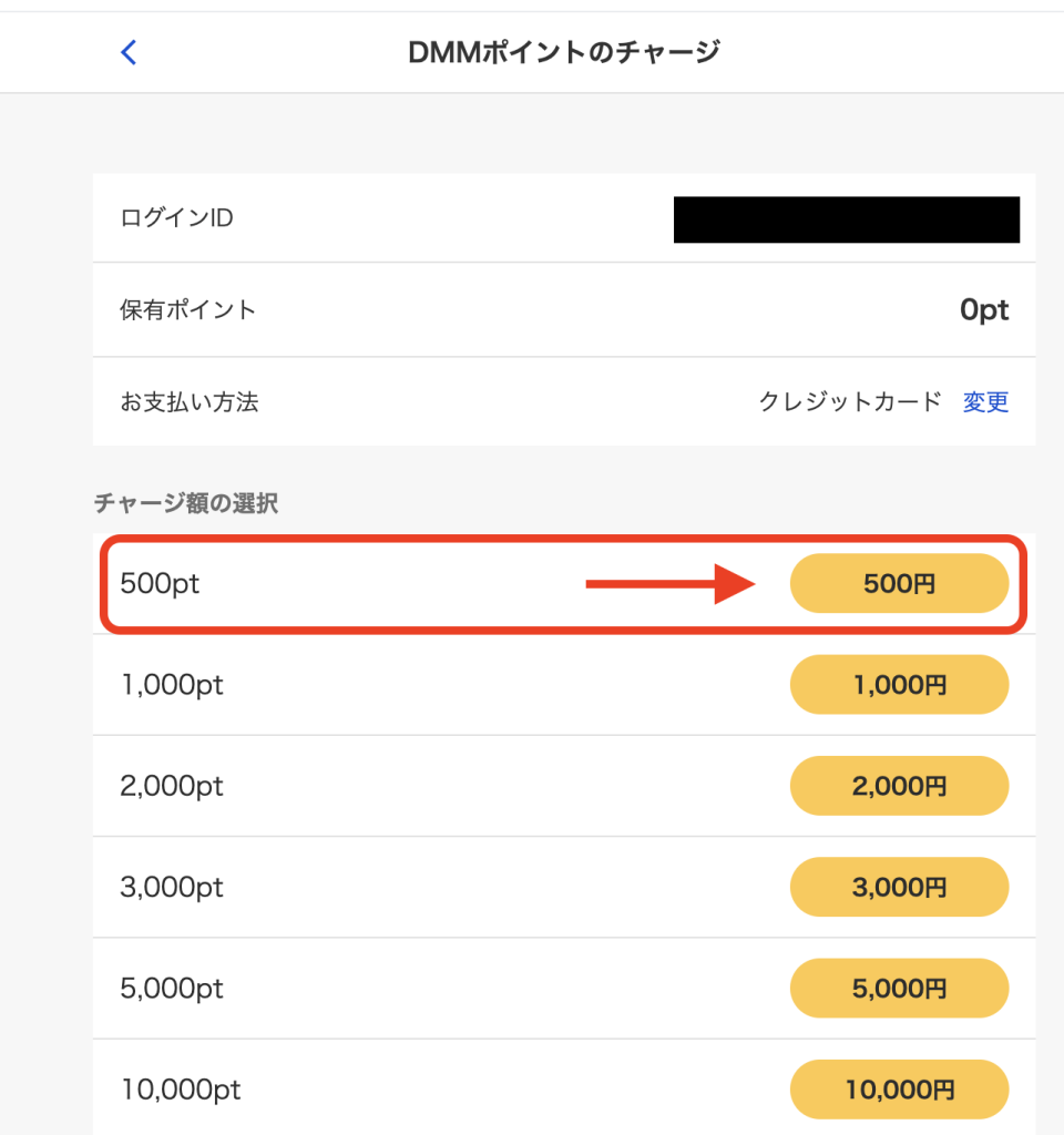 黒塗りの部分は自分が持っているDMMアカウントのログインIDになります。