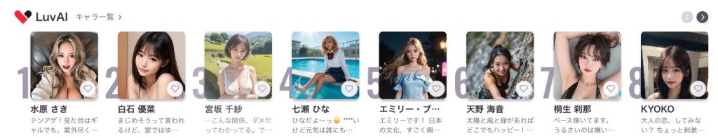 年齢が違ったり、アニメ絵か写真のようなリアル絵か、日常系かファンタジー系かなど選ぶポイントはいっぱいあります。
